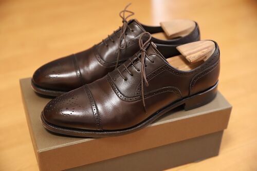 革靴語り5足目はREGALの上位ブランド、「SHETLANDFOX」のバーミンガムシリーズより、ダークブラウンのセミブローグ。価格帯的には、REGALの上位ラインとSHETLANDFOXの下位ラインが大体同じくらいの金額なイメージです。バーミンガムは、同ブランドの中では下…